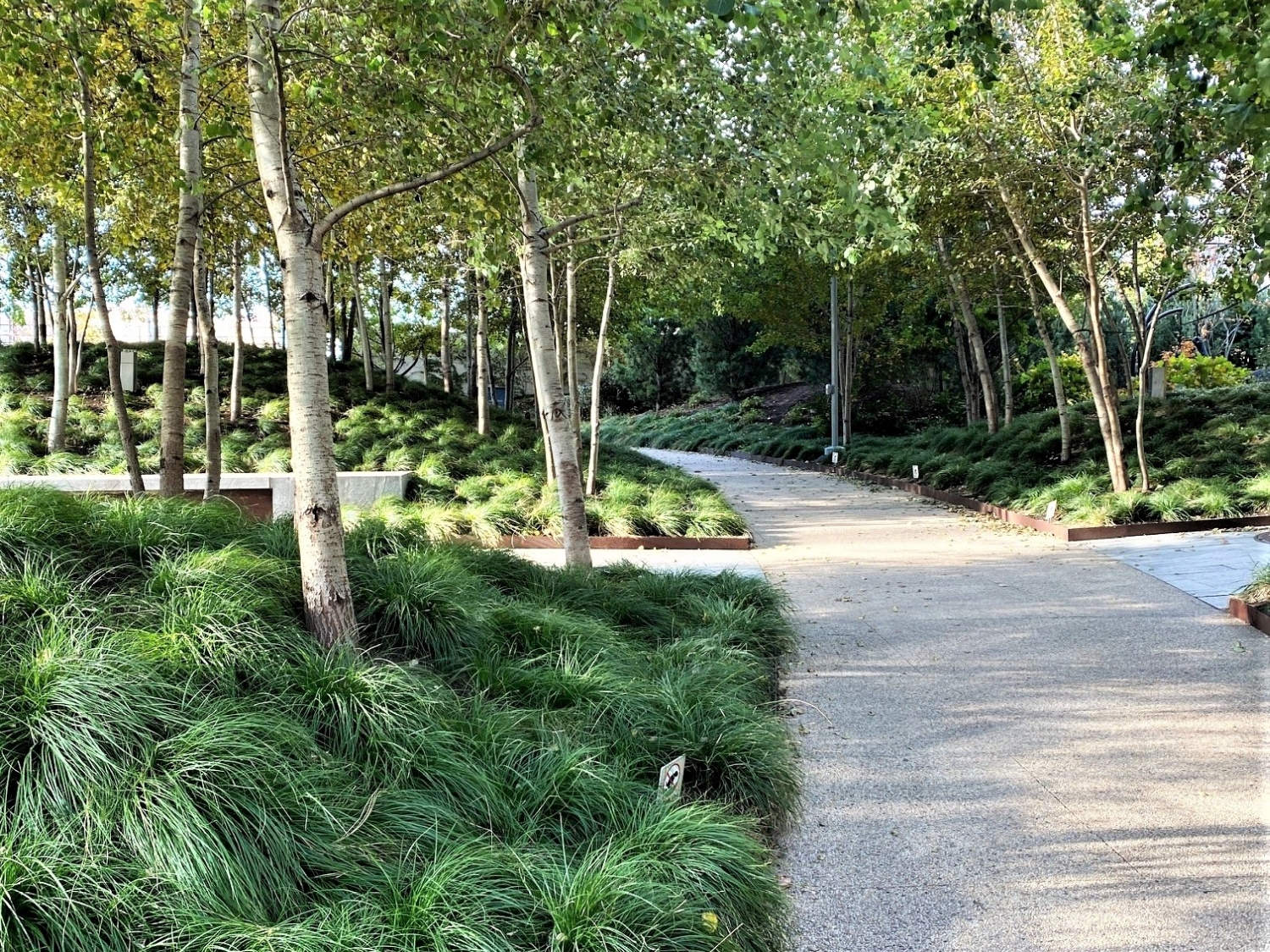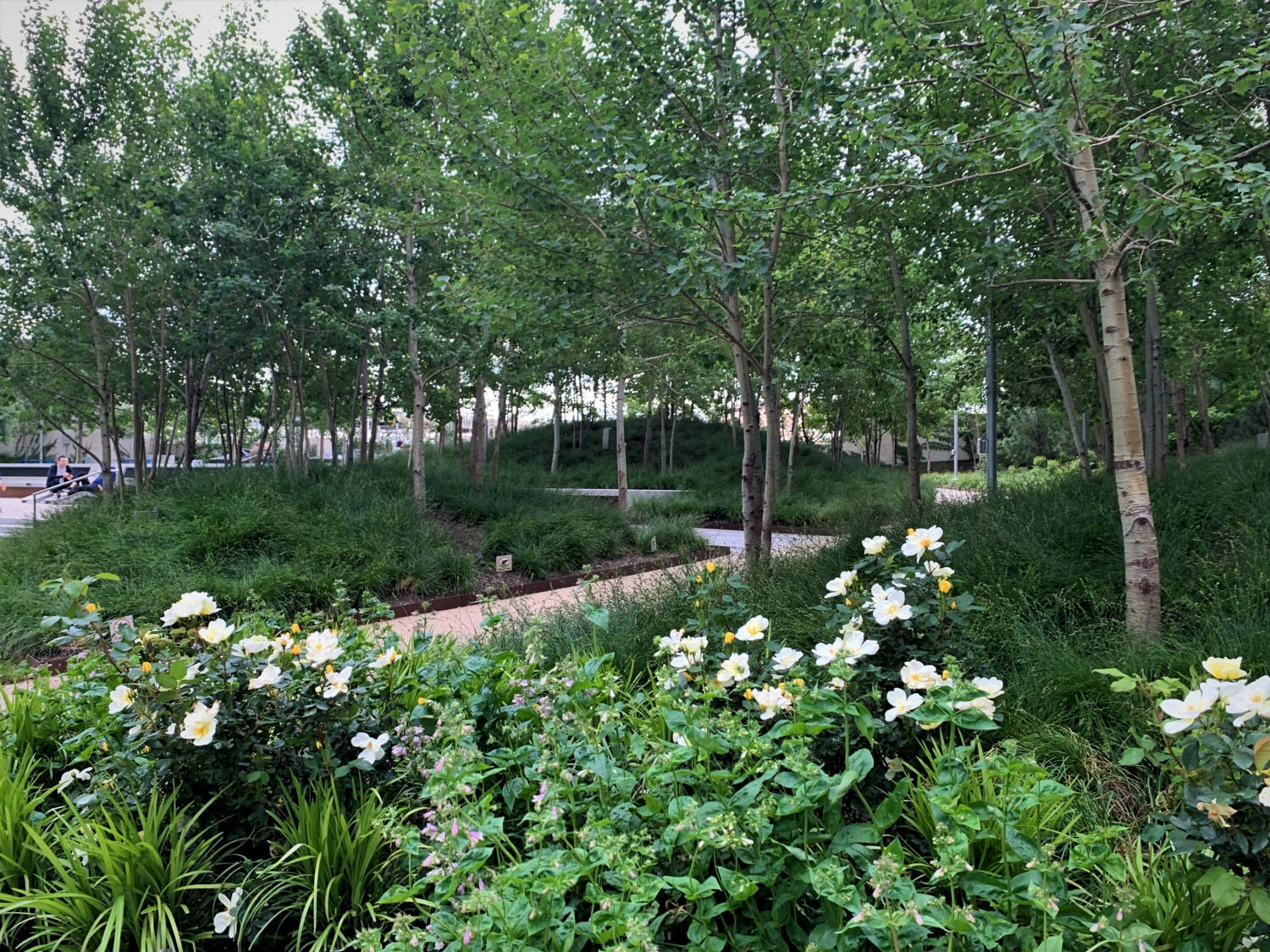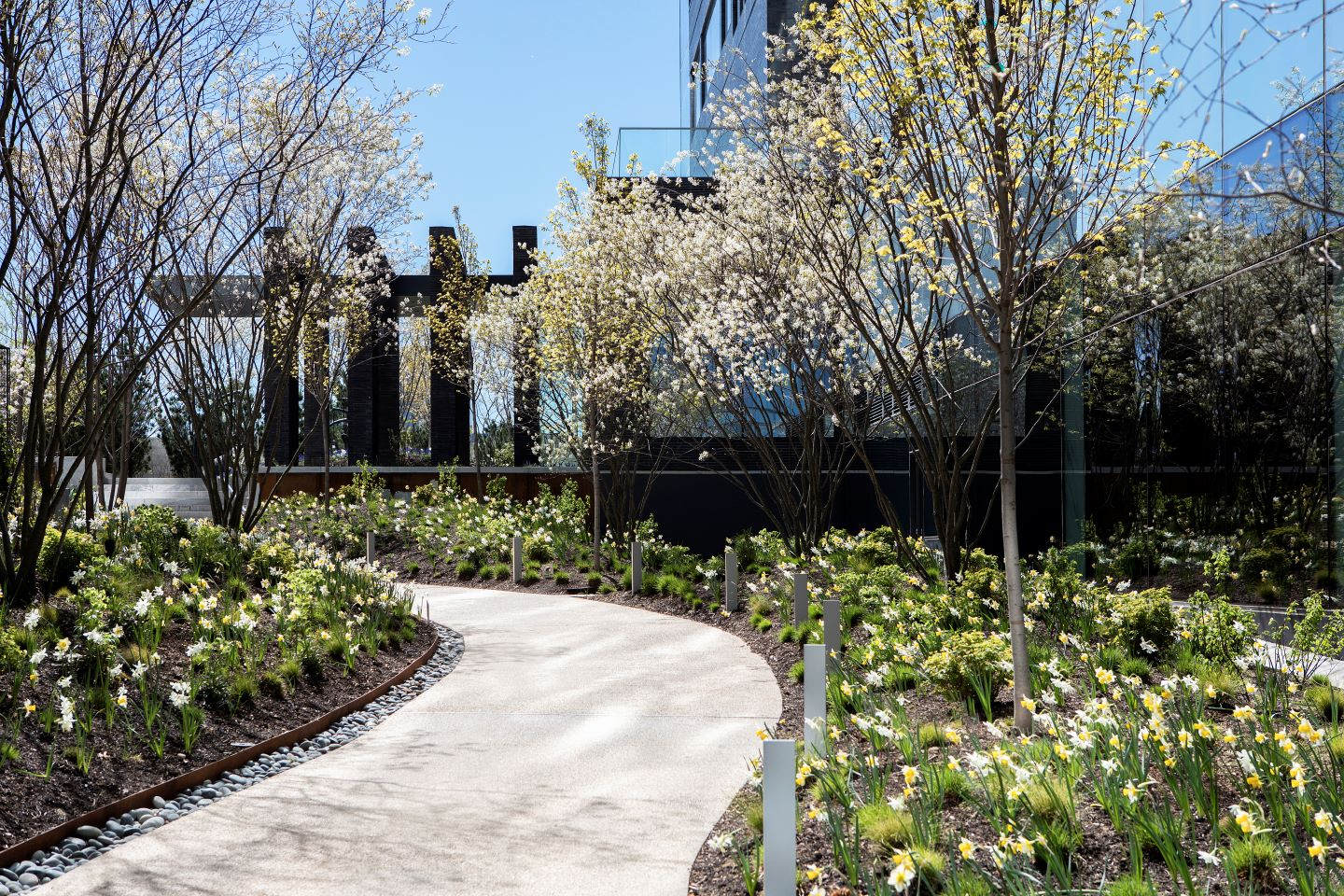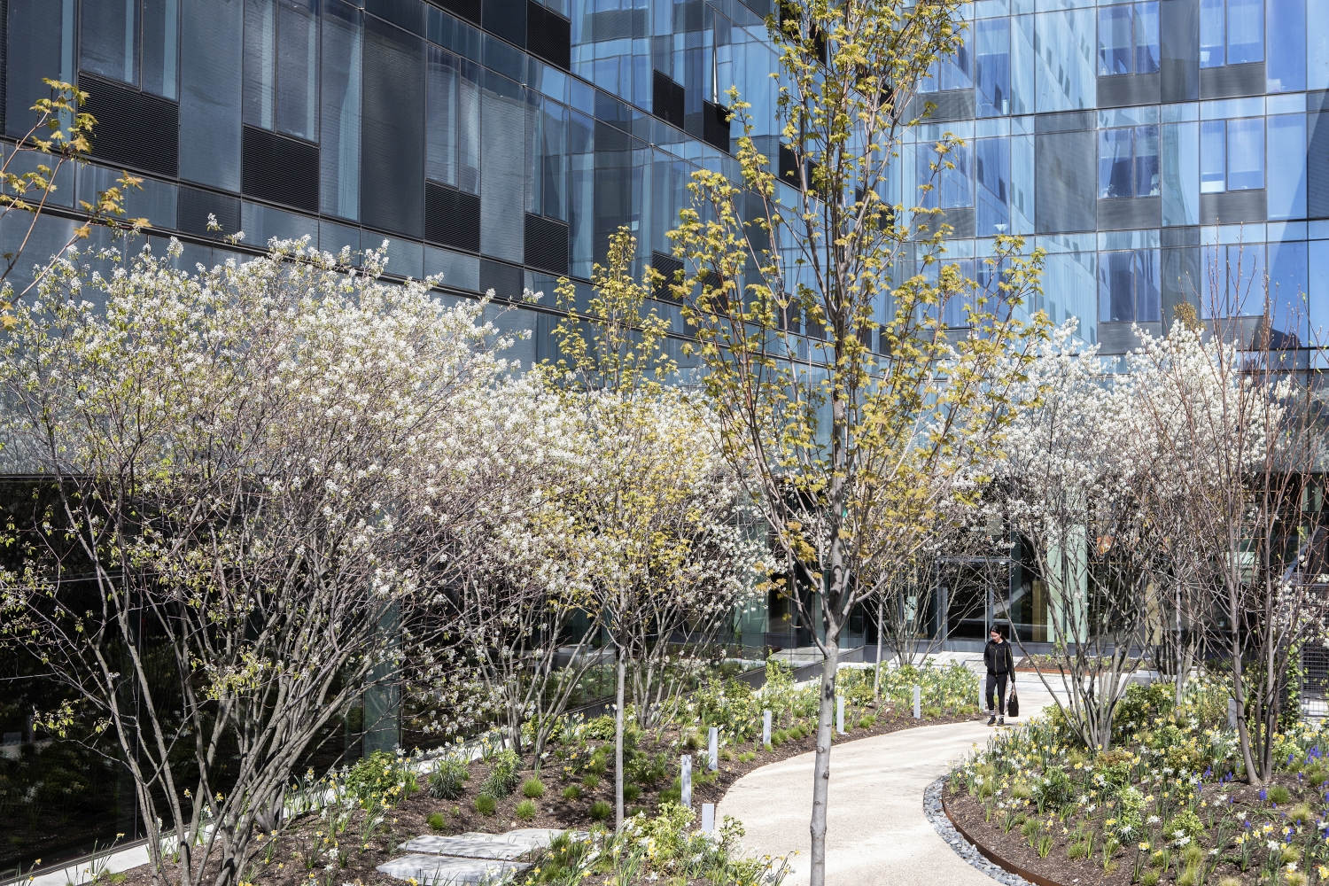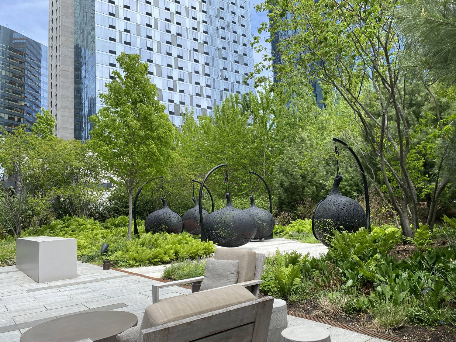 Framed by three 40 plus story towers, a 1 ½ acre common open space landscape emerges as the identity feature after which this mix-used residential development’s is named. Functioning like a historic town green, Jackson Park’s landscape is a community gathering center and residents’ social heart and oxygenating soul. Servicing more than 700 apartments, it offers a variety of popular passive and semi-active recreational amenities which are spatially organized around a large open lawn. The lawn’s central location is defined by a regionally based woodland landscape that permeates out from the buildings’ foundations. The woodland hosts a complimentary network of plant types and companion communities through which a network of garden walkways link building entries and access a collection of distinct activities spaces. Visual and functional clarity is achieved through a cohesive landscape character as the Park’s primary spatial structure. Adjacent to the vast and open LIRR rail corridor, the landscape’s scale, density, and critical mass buffers its transit and industrial context. References to the neighborhood’s industrial commercial heritage inspired the design of the park’s site elements and materials. Proximity to the East River and its original ecology informed the landscape’s plant communities to deepen connections with its environmental and urban development heritage.