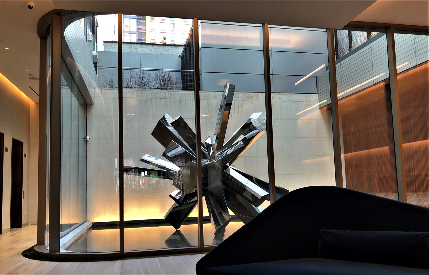 Situated only blocks from the Hudson River, this new 225 residential unit building embraces its urban context with multiple visually stimulating outdoor environments. Upon entry, a central lobby water court draws one into the building’s core with its natural light glazing a limestone feature wall and contemporary sculpture. Glimpses of garden terraces are revealed one level above. The building’s amenity floor is surrounded by two roof garden terraces, separated by the water court below. A common woodland garden typology surrounds distinct private and social gathering garden destinations. Columnar trees and an English Ivy Garden wall mutes neighboring buildings’ presence. Residents are transported to a quiet urban oasis with every visit.