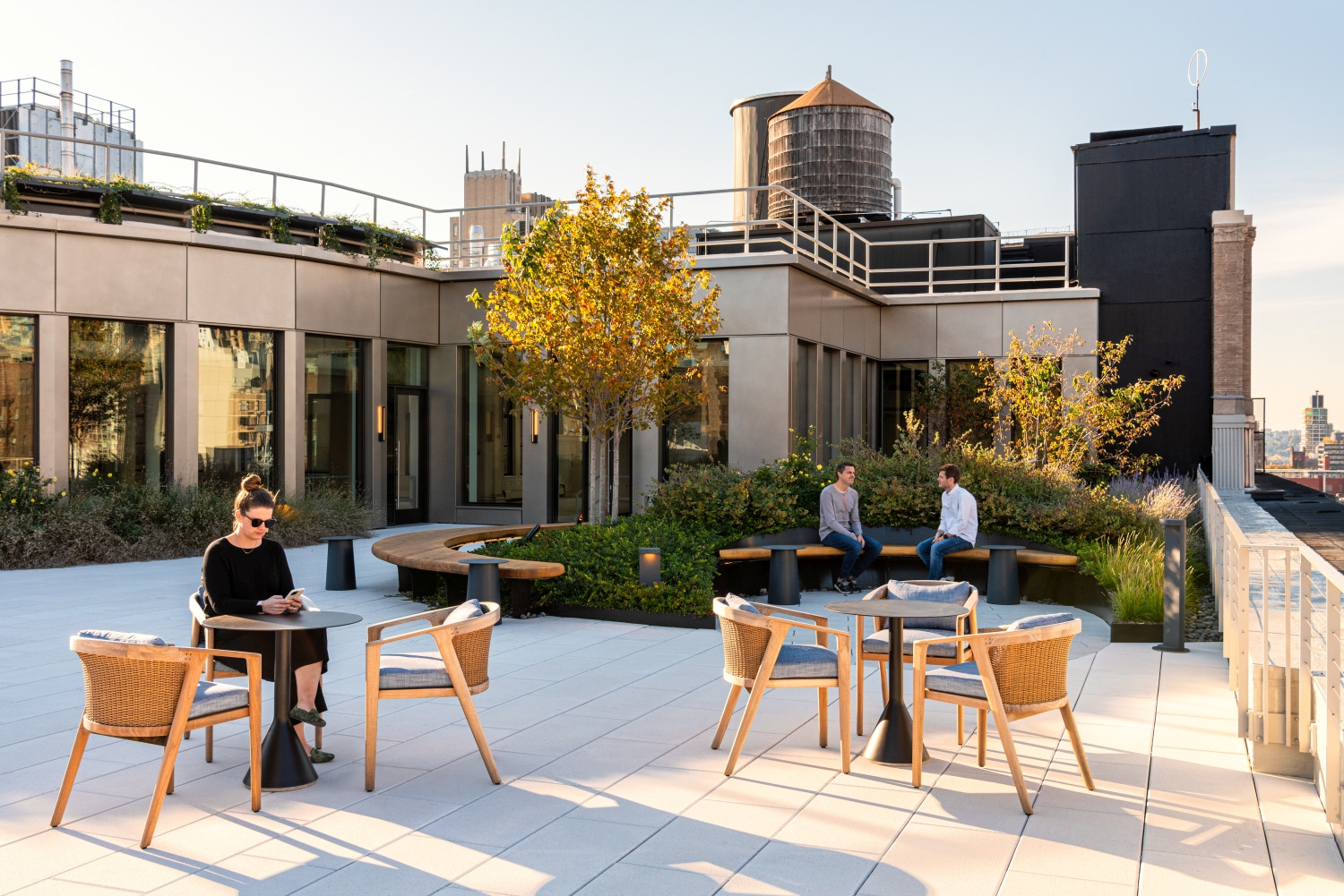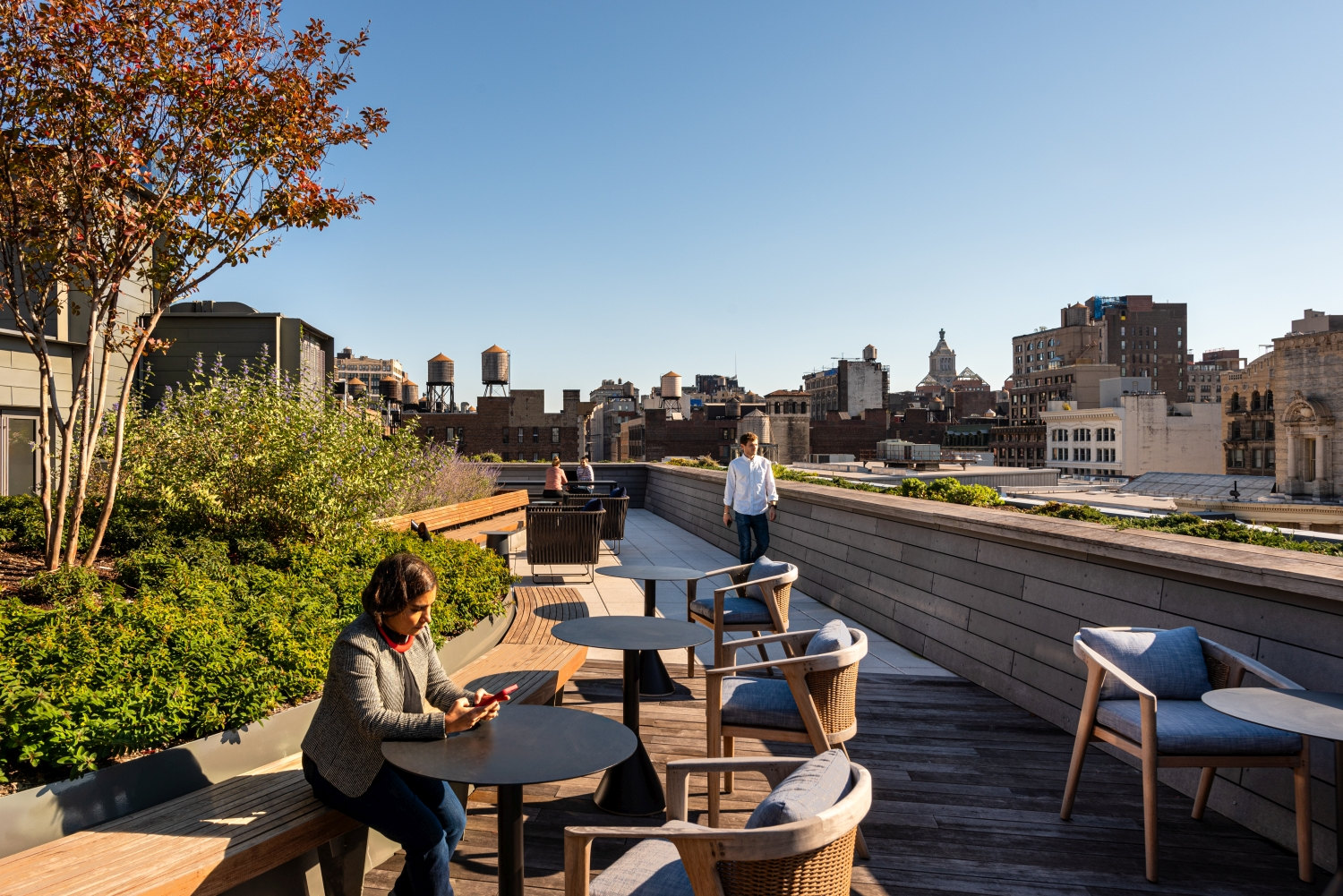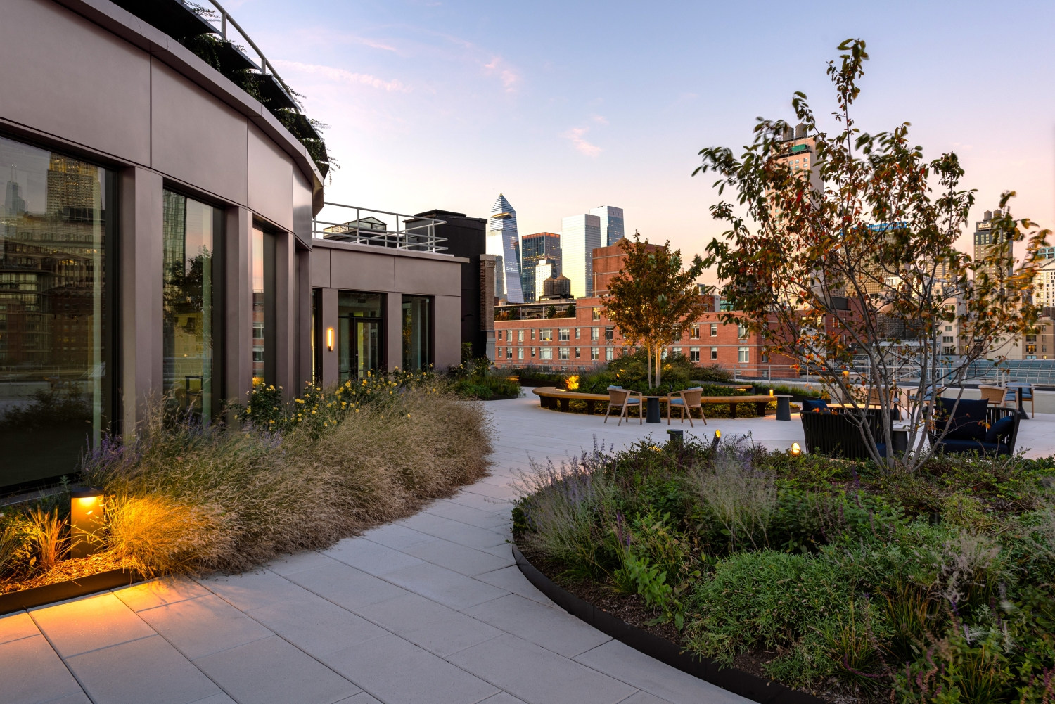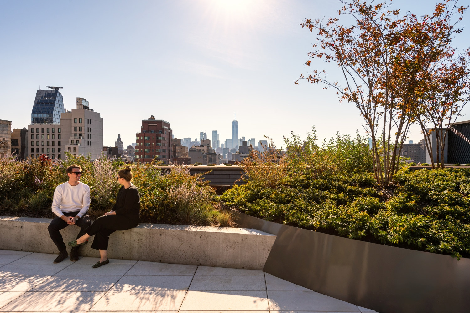 Two rooftop terrace landscapes are among the most distinguishing features of this historic late 19th-century commercial building’s comprehensive commercial-use renovation. HMWhite’s engagement early in the project’s design and planning created an opportunity for a mutually supportive merge between the planned interior uses and the roofs’ landscape development. A variety of exterior and distinct forms of workspaces were derived for seasonal private and communal gatherings within a shady garden setting. The spatial framework and density of each terrace’s landscape enhance its panoramic skyline views experienced from within the building’s interior and exterior spaces. Multi-stemmed canopy trees and drifts of flowering trees punctuate the meandering wildflower meadow and ground cover underplantings. The spatial layering and vastness of the common plant communities and landforms spatially organize the roof terraces’ various workspaces, creating a unifying landscape character that mystifies the garden’s boundaries.